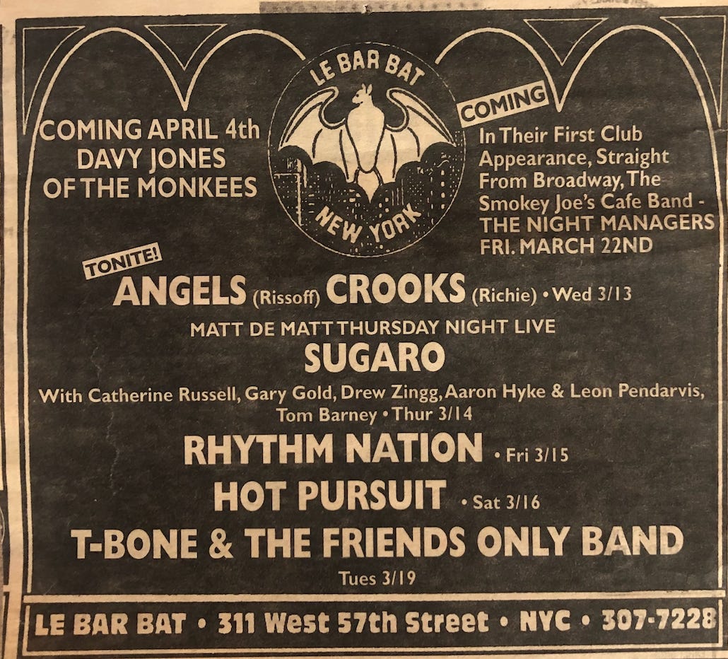 That band was on fire. There’s recordings of us (some with Jeff Young too I think) at Le Bar Bat—it’s floating around YouTube somewhere. I’ll find it. Share it.